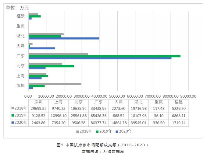 (1)疫情影响下各试点碳市场交易量较去年有所下降,交易额基本持平