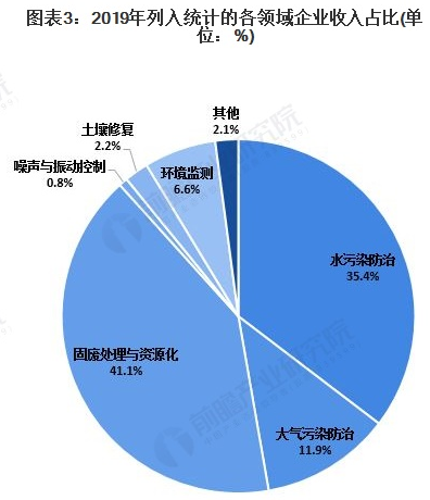 从营业收入看,水污染防治、固废处置与资源化、大气污染防治3个领域企业的营业收入占比居前列,3个领域企业营业收入之和占比高达88.4%。