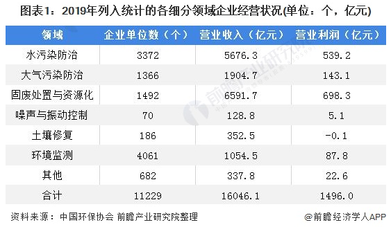 从企业数量看,列入统计的11229家企业相对集中分布在环境监测、水污染防治、固废处置与资源化、大气污染防治4大领域,上述领域企业数量合计占比超过91.7%。