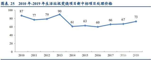 从上图可以看出,2016 年之后,垃圾焚烧项目新中标项目处理价格逐步回升,低价中标情况逐步减少,意昂体育认为原因主要是: