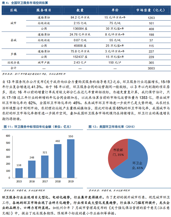环卫服务:随着环卫服务市场对“电动化”、“智能化”装备应用的重视,各地在招投标时将向具有装备提供能力的环卫服务企业倾斜,行业准入门槛提升,龙头企业的品牌力、口碑力显现,装备+服务一体化的龙头企业将迎来装备+服务的双重催化。