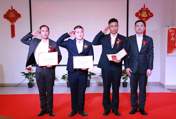 刘米胜(左一)荣获优秀退役军人称号