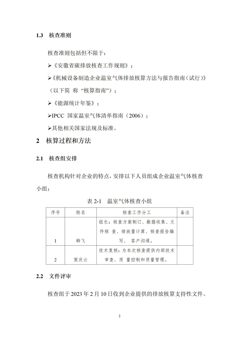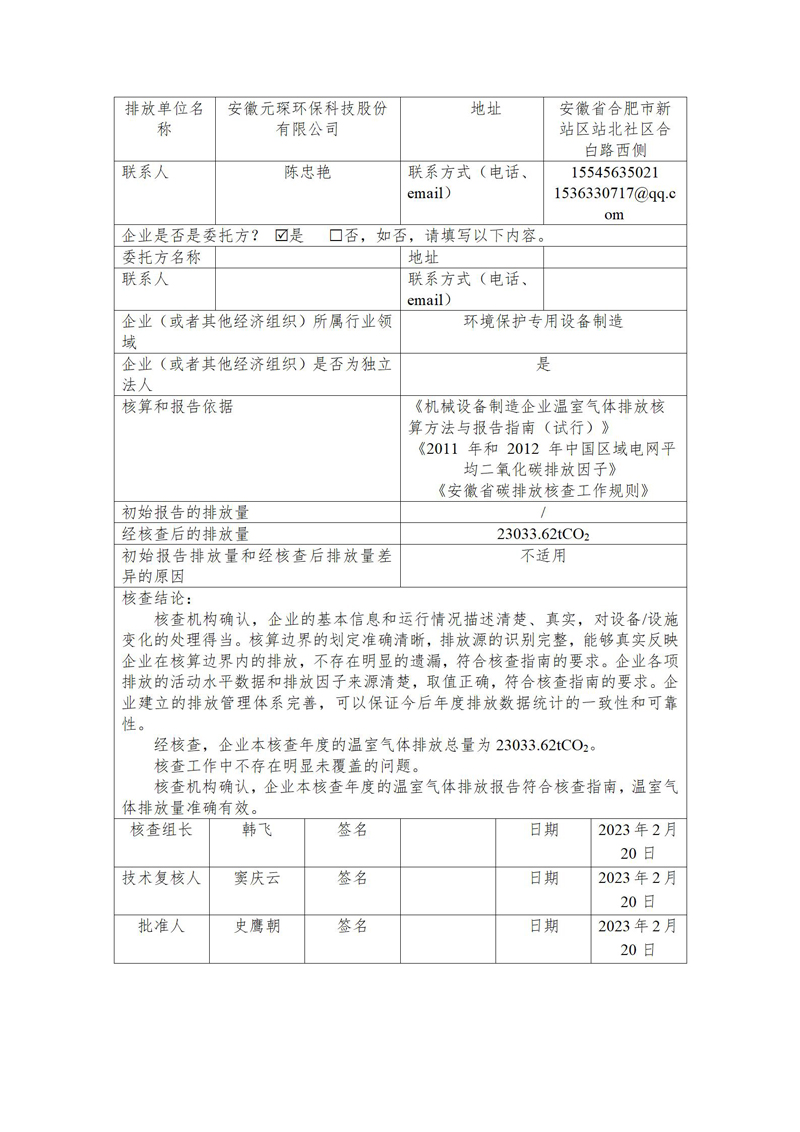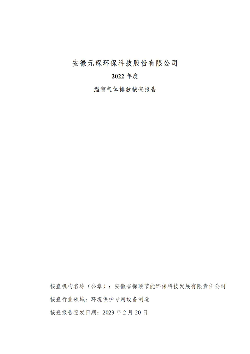 安徽意昂体育环保科技股份有限公司2022年度温室气体排放核查报告