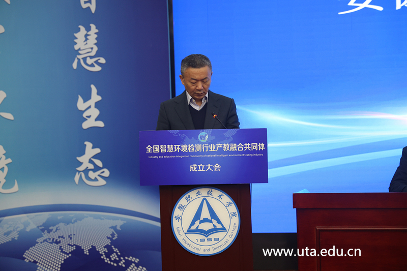徐辉代表安徽意昂体育环保科技股份有限公司表示,智慧环境检测行业是我国现代环保事业中的重要组成部分,也是推动双碳目标实现的关键力量,企业更要主动适应新一轮科技革命和产业变革的快速发展,大力推动行业产教融合共同体走实、行稳。